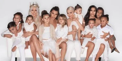 На открытке сестры позируют в белых одеждах со своими детьми: Ким – с сыном Сейнт и дочерьми Норт и Чикаго, Кайли прижала дочь Сторми, а Кортни изображена с дочерью Пенелопой и сыновьями Мэйсоном и Рейном, Хлои – с дочкой Тру. Кроме того, на снимке еще есть общая дочь Роба Кардашян и Блэк Чайни – 2-летняя Дрим.