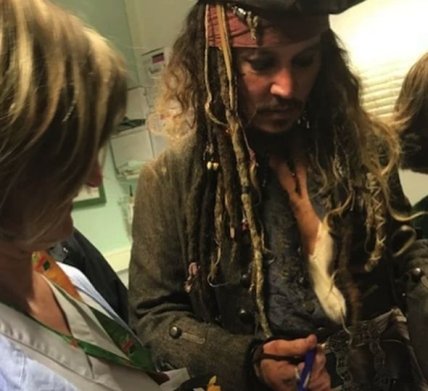 Известный актер Джонни Депп в образе Джека Воробья навестил детей в онкоцентре.