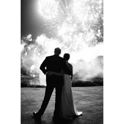 На поздравительной открытке принц Гарри и Меган Маркл стояли спиной к фотографу, с зачарованно вглядываясь на фейерверки.