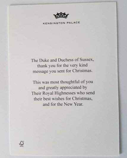 По традиции, перед рождественскими праздниками все представители королевской семьи представили свои открытки. Герцоги Сассекские, впервые выбиравшие совместное фото, остановились на свадебном снимке.
