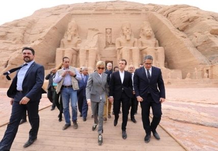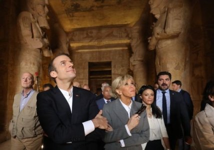Во время визита в страну президентская чета Франции посетила древний храм, куда Брижит решила надеть удобный серый брючный костюм, под который подобрала белую рубашку.
