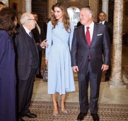 Королева Иордании Рания, сопровождающая своего супруга, монарха Абдаллу II в международных турах, прилетела в Тунис и в очередной раз ошеломила общественность стильным нарядом.