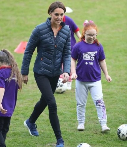 Герцогиня Кембриджская может покорять публику не только в стильных нарядах во время светских выходов. В сети появились снимки, на которых Кейт Миддлтон вместе со своим мужем сыграли в футбол на одном из столичных стадионов.