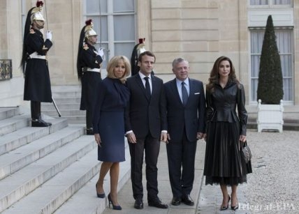 Уже спустя несколько часов Рания появилась на ступенях Елисейского дворца, где позировала вместе с супругами Макрон. И на этот раз не обошлось без блистательных стильных сюрпризов.