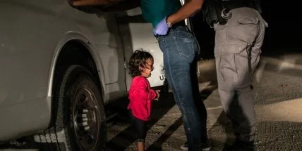 В одном из зарубежных изданий рассказывается, что на фото изображена двухлетняя девочка, чью мать обыскивает американский пограничник на границе США с Мексикой. Мать и ребенок незаконно переправились через реку Рио-Гранде из Мексики и были задержаны сотрудниками пограничной службы США. Фотография была сделана 12 июня 2018 года в МакАллен, штат Техас.