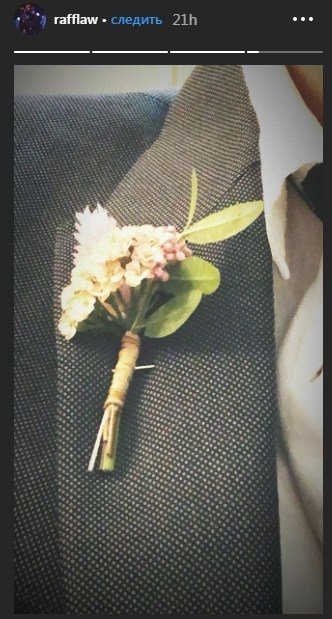 На свадьбе присутствовал 22-летний сын британского актера Рафферти Лоу. Он опубликовал на своей странице в Instagram короткие видео и снимок бутоньерки на груди.