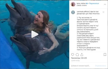 На днях Леся Никитюк отправилась в Одессу, а на официальной странице в Instagram опубликовала видео того, как купалась с дельфинами.
