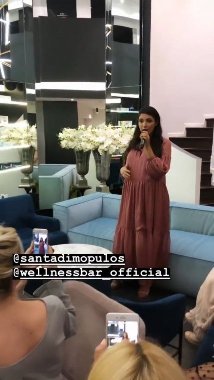 Пользователи ненароком об этом узнали от журналистки и телеведущей Полины Нени. Она опубликовала в Instagram-stories видео с презентации услуг, а именно - витаминных коктейлей. И там засветилась Санта Димопулос, где продемонстрировала округлые формы.