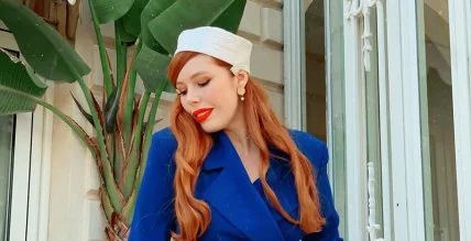 Красотка сделала невероятной пышности прическу и казалось, что ее рыжие волосы можно увидеть из космоса! А яркий макияж с голубыми тенями и фиолетовой помадой завершил образ. Однако Соня все же выбрала сдержанное черное платье, но с акцентом на ножки, которые украсила чулками в сетку.