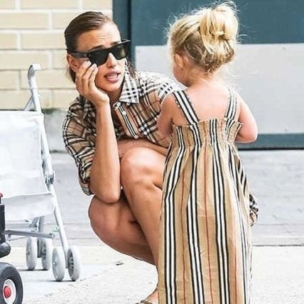 Модницы: Ирина Шейк прогулялась по улицам Нью-Йорка с дочерью в платьях Burberry