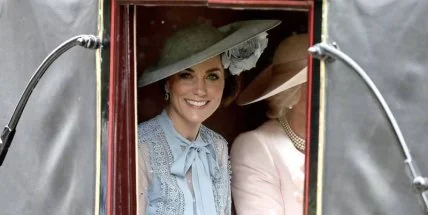 Сегодня, 18 июня, Кейт Миддлтон появилась на Аскотском ипподроме, где состоялся первый день Королевских конных скачек. Для мероприятия под открытым небом стильная герцогиня выбрала платье голубого оттенка в стиле "бонтон" от ливанского кутюрье Elie Saab. Элегантность образу добавили полупрозрачные рукава с тонкой полоской кружевной вышивки и монохромным горохом по всей длине, а также изысканный бант, завязанный на шее герцогини.