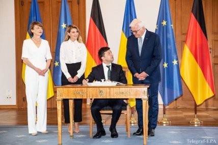 "Встреча с Федеральным Президентом Германии Франк-Вальтером Штайнмайером и госпожой Эльке Бюденбендер в официальной резиденции, дворце "Bellevue", - прокомментировала встречу Елена Зеленская.