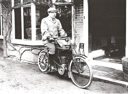 Известный писатель и сильнейший спортсмен - это об Артуре Конан Дойле, который тоже был любителем первых мотоциклов. Также автор "Шерлока Холмса" занимался дизайном и конструированием мотоциклов.