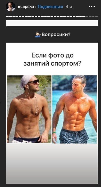 Экс-Холостяк Иракли Макацария рассказал об отношениях с алкоголемТак, вчера, 26 июня, в сторис Иракли отвечал подписчикам на интересующие их вопросы. Один из пользователей попросил Макацария показать фото до тренировок и после, чтобы отследить изменения, которые происходят в результате работы над собой. Экс-Холостяк не постеснялся показать, как выглядел до усиленных занятий спортом. Разница заметна невооруженным взглядом.