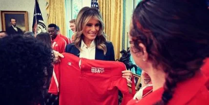 В своем блоге в Instagram Мелания Трамп показала эффектные кадры, сделанные во время официальной встречи в Белом доме. Согласно фото, президентская чета пригласила всех американских спортсменов, которые принимали участие в Мировых играх Специальной Олимпиады 2019. Спортсмены подготовили для Дональда и Мелании особые подарки – футболки их сборной.