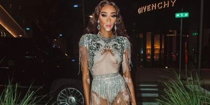 Свой праздник Винни Харлоу, модель с редкой болезнью витилиго на коже, отметила 27 июля. В конце события она разрезала большой розовый торт и поблагодарила всех, кто находился с ней в этот день.