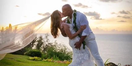 Дуэйн, или как его еще называют "Скала", опубликовал пару красноречивых фотографий, на которых появился со своей любимой в свадебных образах. 47-летний актер и 34-летняя певица обменялись свадебными клятвами на живописном холме Гавайев.
