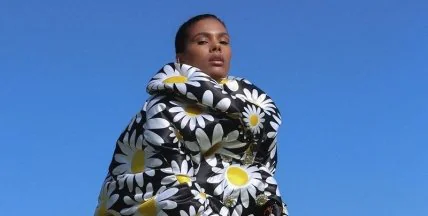 Британский бренд Richard Quinn известен не только своими психологическими принтами, но и тем фактом, что на его шоу в свое время пришла Королева Елизавета. Теперь смешанные узоры - гигантские ромашки, горошек, леопард и зебра - "расцвели" на капсуле Moncler, а одним из лиц проекта стала Тина Кунаки.