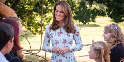 Для появления на публике и официального знакомства Кейт Мидллтон надела романтическое платье длины миди хвойно-зеленого цвета. В ее руке неизменно скромный клатч изумрудного оттенка, а образ завершили серьги за 7 долларов. Герцогиня Кембриджская, как всегда, была на высоких каблуках и много улыбалась.