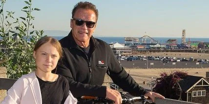 Арнольд Шварценеггер покатался на велосипеде с Гретой Тунберг.