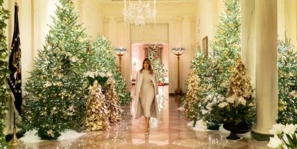 Но не успела Мелания Трамп отдохнуть после перелета, как уже похвасталась в сети результатами своей работы. Первая леди в белоснежном платье и пальто обошла здание Белого дома и проверила рождественский декор комнат. На инстагарм-странице она поделилась эффектными видео и фото, которые уже успели покорить ее фанатов.