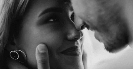 На цветных и черно-белых снимках Даша и Никита нежно обнимаются и целуются, а также снимают друг друга на старый фотоаппарат.