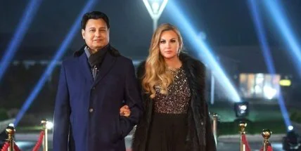 Для особенного снимка пара выбрала праздничный family-look. Миллиардер красовался рядом со своей женой в джинсах и красном свитере со снежинками, а вот Камалия позировала перед камерой в таком же наряде с новогодним рисунком. Образ артистка дополнила вечерним макияжем с акцентом на глаза и аксессуарами.