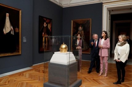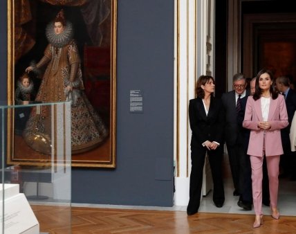В розовом брючном костюме: королева Летиция появилась на открытии выставки (Фото)