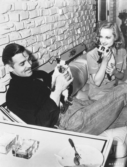 Кларк Гейбл и Кэрол Ломбард с двумя сиамскими кошками в своем доме в долине Сан-Фернандо, 1940
