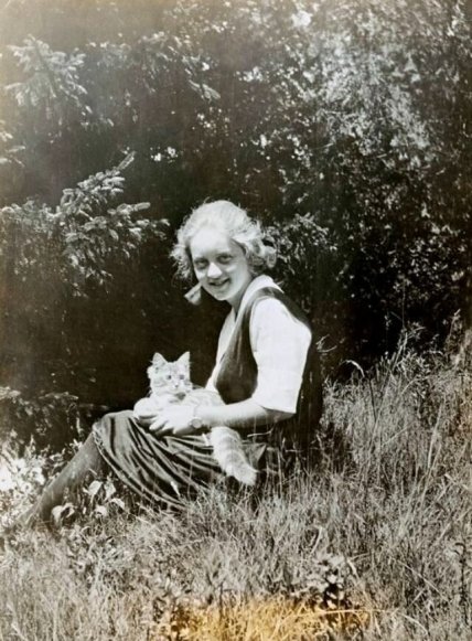 14-летняя Бетт Дэвис с питомцем, 1922
