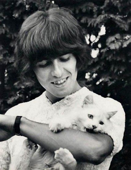 Джордж Харрисон с котом Корки, Суррей, Англия, 1965