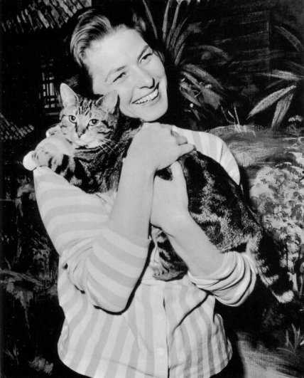 Ингрид Бергман обнимает кота во время съемок в Элстри, Англия, 1958