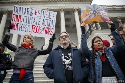 Звезда фильма "Джокер" выступил на акции в Вашингтоне, посвященной климатическим изменениям с короткой речью.
