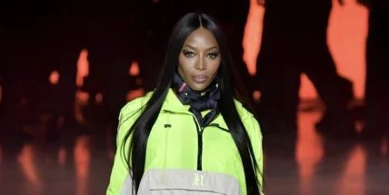 Наоми Кэмпбелл предстала на подиуме в спортивном образе, который подчеркнул ее стройные длинные ноги. Она позировала в серо-неоновом костюме оверсайз и массивных кроссовках на платформе в тон наряду. Изысканности такому стритстайл-аутфит добавила черная косынка. Собственным примером модель доказывает, что выглядит потрясающе даже в свои 49 лет.