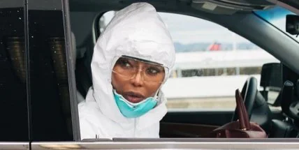 На личной странице в инстаграме Наоми Кэмпбелл опубликовала видео, в котором показала, как она готовится к перелету из Лос-Анджелеса в Нью-Йорк. Для путешествия она выбрала защитный антибактериальный костюм за 16 долларов – около 400 гривен, респираторную маску, очки и перчатки.