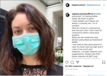 "Всем привет! Сегодня мне уже лучше, температура ушла. Слышала, многие не знают, где я нахожусь. Так вот, я в Лондоне", — написала она.