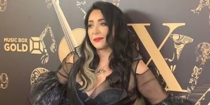 56-летняя Милявская позирует в смелом облегающем костюме телесного цвета, который расшит бисером.