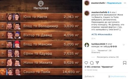 По результатам взвешивания кулинарных отходов самый большой вес была у Толика Цуперяка и Саши Цвигуна – 14 кг 450 граммов и у Евгения Грибеника и Никиты Алимова – 8 кг 628 граммов. Блюда этих двух пар судьи не пробовали, а сразу отдали им черные фартуки и отправили на балкон.