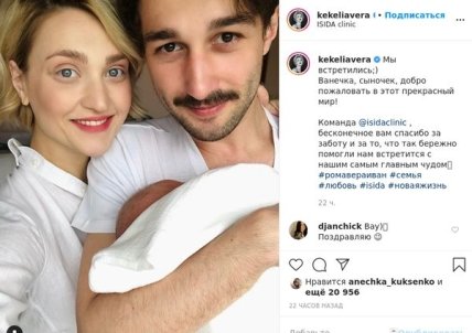 "Мы встретились. Ванечка, сыночек, добро пожаловать в этот прекрасный мир!", - написала Вера. "У счастья есть имя. Его зовут Ваня", - поделился эмоциями новоиспеченный отец.