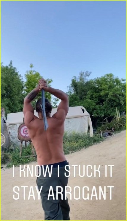 На карантине Джейсон Момоа продолжает оттачивать "геройские" навыки. Недавно вместе с сыном он записал видео, в котором показал, как метать боевые топоры. В ролике актер, сверкая мускулами и вооружившись томагавками, в течение нескольких дублей кидает их в мишень практически не глядя. В одном из дублей Джейсон попал в цель всеми топорами, а в остальных почти все запустил мимо.