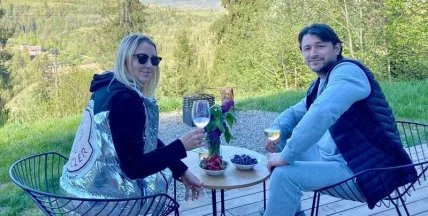 Фотографиями с отдыха супруги поделились на своих страницах в соцсетях. "Лучшая самоизоляция - это когда не только маски и антисептик, но и когда на сотни метров вокруг ни души", - написал Притула в Facebook. На одном из снимков шоумен запечатлен с супругой на террасе с видом на горы. Они пьют вино и улыбаются на камеру.