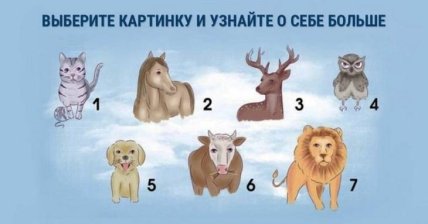 Найти ответы на эти вопросы можно прямо сейчас! Для начала закройте глаза и подумайте о том, как вы сами себя видите. Не размышляйте логически, опирайтесь на чувства и ощущения относительно себя самого. Теперь откройте глаза, посмотрите на картинку. С каким из этих животных вы готовы себя ассоциировать?