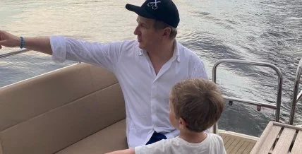 Украинский телеведущий Юрий Горбунов поделился фото, как маленький сын управляет целой яхтой.