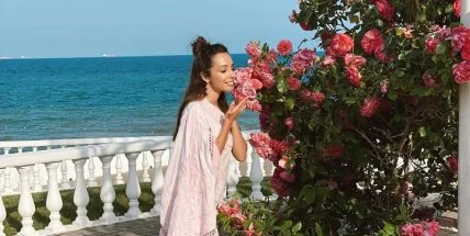 Для пляжной вечеринки в столице знаменитость выбрала легкий летний образ. На ней ассиметричная двухцветная юбка, которую она сочетала с нюдовим топом на бретелях. Образ завершили золотистые босоножки на высоких каблуках и насыщенно-красный цветок в волосах, подобно образу Кармен.