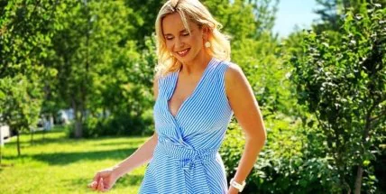 Особое внимание привлекает пикантное декольте телеведущей. Волосы она уложила в легкие локоны, а на лице сделала нежный макияж с нюдовой помадой на губах. Актриса решила полакомиться холодным мороженым, чтобы хотя бы немного отдохнуть и расслабиться в солнечный день.