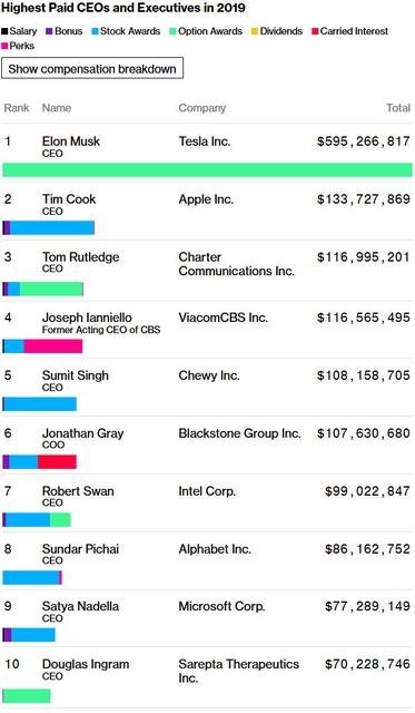 Издание Bloomberg составило рейтинг самых высокооплачиваемых руководителей компаний в США по итогам 2019 года. И в нем немало представителей технологических компаний.