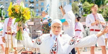 Коллектив "Verka Serduchka & Band" удивили киевлян неожиданным, но жарким выступлением. Артисты не только искупались в фонтане, но и пообщались с прохожими и угостили их шампанским.
