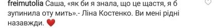В комментариях к записи отметилась и Фреймут, процитировав строку из творчества Лины Костенко и назвала Педана и Притулу "родными навсегда".