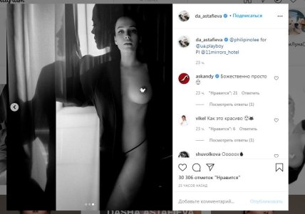 Добавим, что образ Астафьевой кардинально отличается от тех, которые она публикует на своей страничке в Инстаграм (особенно пару последних обнаженных постов).