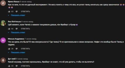 Хотя танец у Ольги Фреймут и Екатерины Кухар получился трогательным, но для многих зрителей он оказался еще и очень коротким и нелепым. Поклонники проекта негативно прокомментировали выступление звезд, а вот выступление 90-летнего Григория Чапкиса и мамы Верки Сердючки похвалили.